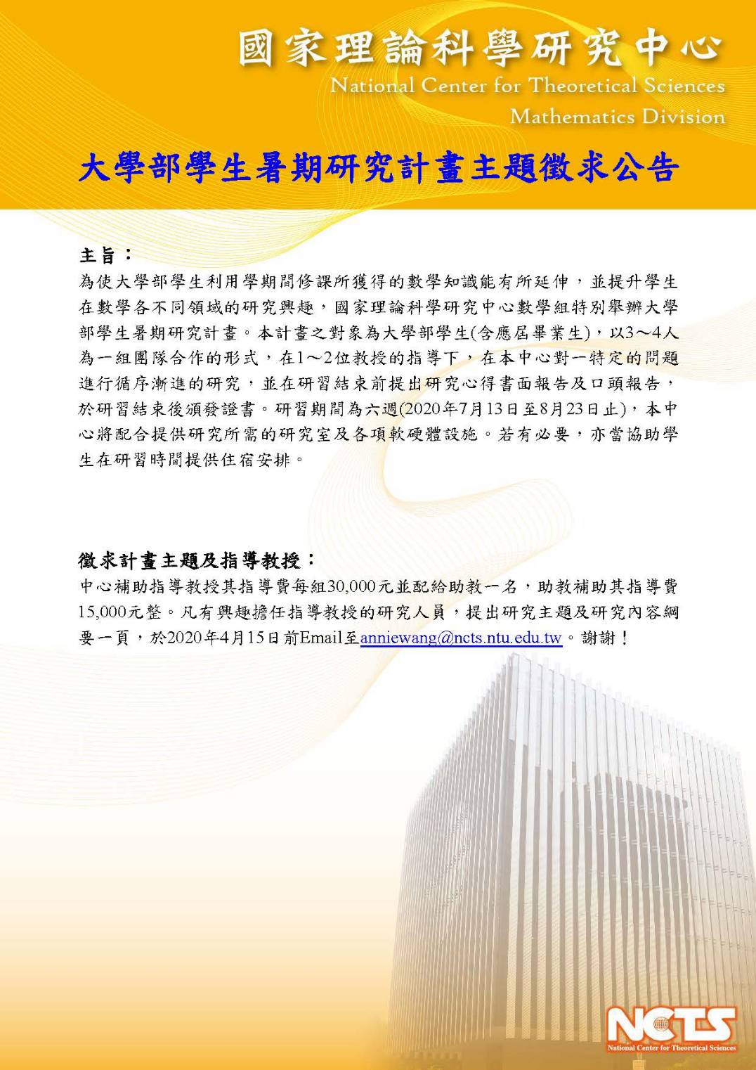 Email: apply2@ncts.tw